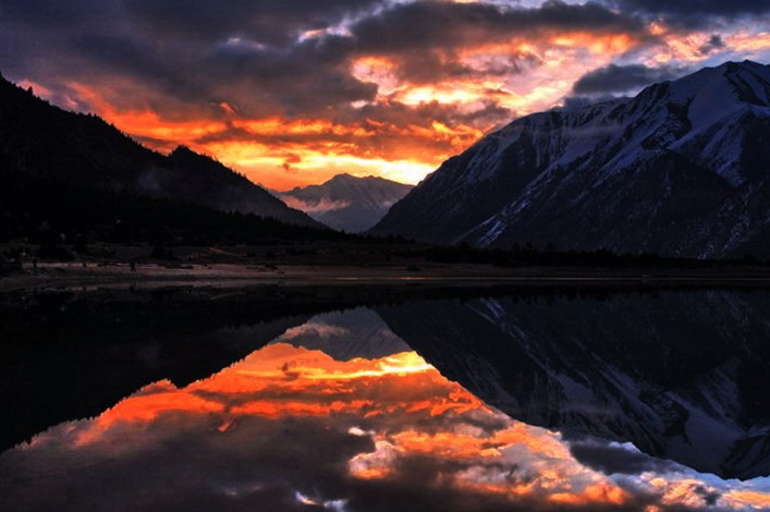 然烏湖周?chē)呱轿B柧?,眾多海?000米以上的高峰皆有冰川發(fā)育;而山下近湖坡地則長(zhǎng)滿(mǎn)了青翠蒼勁的松柏等針葉林叢,在這群山綠影環(huán)抱之中的然烏湖顯得格外靜謐而嫵媚,它那明鏡般的湖面倒映著四圍的雪峰、翠林和那藍(lán)天白云,景色異常迷人;再加上湖畔綠茵般的草灘上成群的牛羊以及一塊塊生長(zhǎng)著青稞、豌豆、油菜等作物的農(nóng)田點(diǎn)綴其間,構(gòu)成了一幅既有青藏高原獨(dú)特的壯麗風(fēng)貌、又有藏區(qū)田園牧歌般風(fēng)韻的風(fēng)情畫(huà)卷。當(dāng)你沿著湖邊公路巡視暢游時(shí),你就會(huì)充分領(lǐng)略到這里的風(fēng)采,并讓你有種回歸自然的感覺(jué),心曠神怡之極。