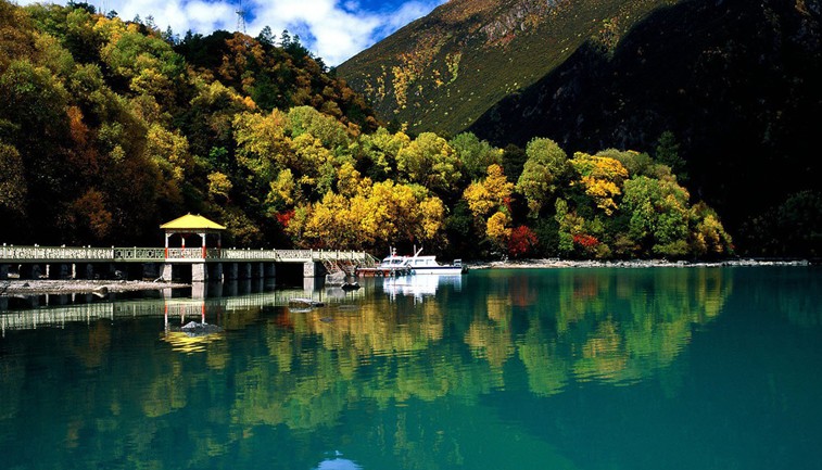 巴松措湖水清澈見底,四周環(huán)繞的雪山倒映其中。沙鷗、白鶴浮游湖面,湖水透明可見游魚如織,情趣怏然。每到春季,湖四周群花爛漫,雪峰陣列并倒影湖中,景色宜人至極。秋季萬山紅遍,層林盡染,天空碧藍(lán)如洗,火紅的楓葉折射燦爛的陽光,倒影在碧藍(lán)的湖面,景色美不勝收。距岸邊大約一百米處有一座小島名為扎西島,版權(quán)所有山東聊城聊之旅國際旅行社有限公司,轉(zhuǎn)載必究!傳說該島是“空心島”,即島與湖底是不相連而漂浮在湖水上的。雖然只是個傳說,卻讓人覺得蔚為神奇,你到島上也不妨試試在島的某些地方跺跺腳,看是否有空心的感覺。
