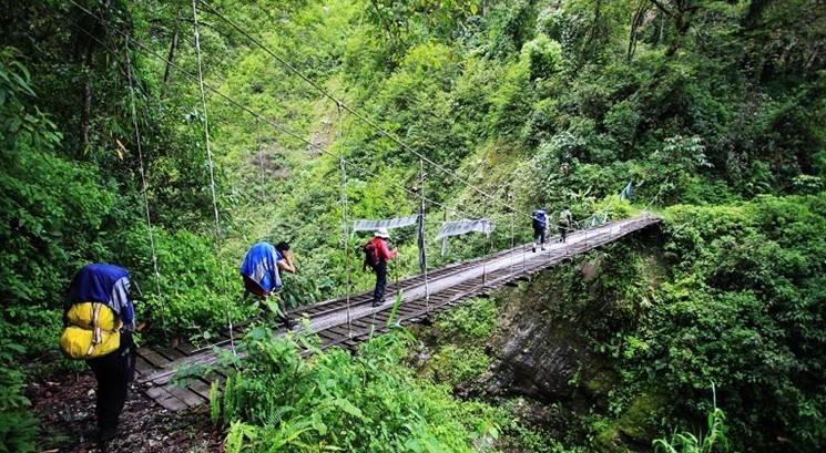 因?yàn)榈貏?shì)隱蔽,墨脫被稱為“隱藏在云霧、雪山、密林中的人間絕域”、“地球上的最后秘境”。從前去墨脫,必須翻雪山、攀峭壁、穿密林,用自己的雙腳長(zhǎng)途跋涉、步步丈量。通往這天堂般美麗地方的道路如同煉獄,江兩岸山壁陡峭,深谷中江水洶涌,許多路段是在峭壁上鑿成的天險(xiǎn),一面是陡峭的山崖,一面是萬(wàn)丈深淵;山口處不分冬夏都是白雪皚皚,沿途是猝不及防的雪崩、驟雨、飛石、泥石流諸多艱險(xiǎn)。