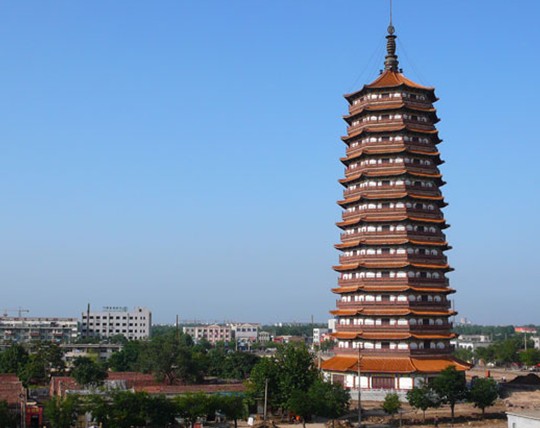 莘縣燕塔坐落于莘縣城中心,是一座存放高僧骨灰的佛塔,舊縣志中稱“古塔”、“寶塔”,外地人則稱“莘縣塔”。莘縣人因塔上棲息一種體型較大的鐵皮燕子而親切地稱為“燕塔”。 莘縣燕塔的歷史可追溯到北宋治平元年(即公元1064年),那一年舉行了隆重的古塔奠基儀式。金天眷二年(即公元1139年),塔終于宣告竣工,一個(gè)塔前后竟建了75年。古塔共十三級(jí),為樓閣式青磚木柱結(jié)構(gòu),塔體八面,每層四門,通高66.7米,塔基南北徑長(zhǎng)22米,東西徑長(zhǎng)23米,占地面積371平方米。古塔在莘縣城中心矗立了829年,歷經(jīng)王朝更替,社會(huì)變遷,戰(zhàn)事侵襲,巋然不動(dòng)。