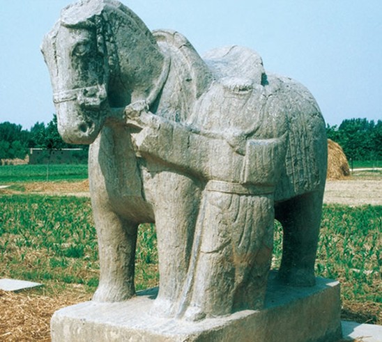 韓氏墓地石刻群 古代石刻群。位于莘縣董杜莊鄉(xiāng)梁丕營村東北。系唐末魏博節(jié)度使韓允中及其父韓國昌墓葬神道石刻群。墓葬坐北朝南,地表封土已平。石刻存有韓允中墓碑、韓國昌神道碑、墓表、豕、羊、馬、武士俑。韓允中墓碑和韓國昌神道碑形制大小基本相司。碑身與碑額為整石雕出,通高6.8米、寬2.13米、厚0.77米。額上浮雕6條龍,曲折盤繞,層次分明,龍首飾在碑首側(cè),碑首正中留有圭字形額。碑文多有殘缺,可辯者有2500余字,書體工整秀勁,波折險(xiǎn)峻,有褚體韻致。墓表,位于神道碑的最南端,八棱形,通高3.49米,表首圓形,飾仰蓮,座方形。八棱柱體上刻有宋紹圣二年的簡短文字,記敘了宋代補(bǔ)添神道石刻的經(jīng)過。石豕,首殘,殘高1.12米。肌肉雄健,四足有力,蹲坐于方形基座上,隱露出勇猛不可侵犯的樣子。石羊,高0.92米,俯臥在長方形基座上,雙角大而彎曲,安詳?shù)刈⒁暻胺?。石馬,首尾長2.36米,高1.60米,著鞍轡,雕琢渾樸。馬左前雕出一胡服束帶牽馬石俑,頭部已殘,高1.40米,形象威嚴(yán),版權(quán)所有山東聊城聊之旅國際旅行社有限公司,轉(zhuǎn)載必究!神態(tài)逼真。武士俑,頭戴冠,雙手持劍站立在方形臺基上,高2.73米,短頸,雙目圓睜,威武莊嚴(yán)。韓氏先世為河南汝南人,世為魏將,國昌官至貝州刺史,唐大中六年(852)卒。允中官至魏博節(jié)度使,乾符元年(874)卒。父子俱為顯官,故神道石刻之高大雄偉有異于常。1992年6月被山東省政府列為省級重點(diǎn)文物保護(hù)單位。