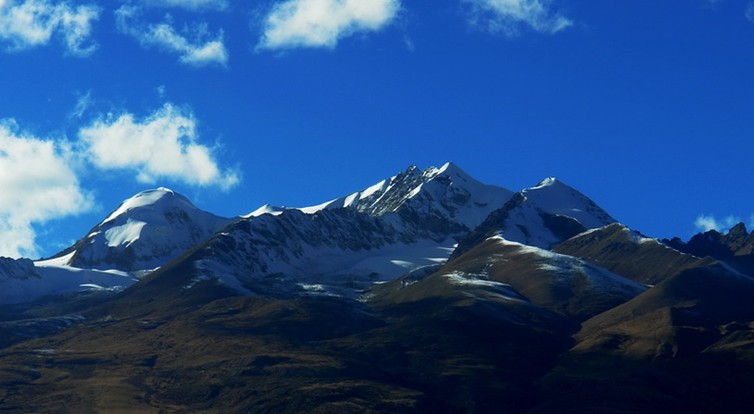 隨著季節(jié)的變換,桑丹康桑雪山山峰也呈現(xiàn)不同的色彩:夏日呈乳色,冬季呈銀色,春天秋天白而亮。山腳下的跋絨谷中的跋絨寺,是藏傳佛教噶舉四大派之一的跋絨噶舉主寺,每年都有不少信徒前來朝拜進(jìn)香。青藏公路從此山前面通過,因而人們不難睹其尊容。