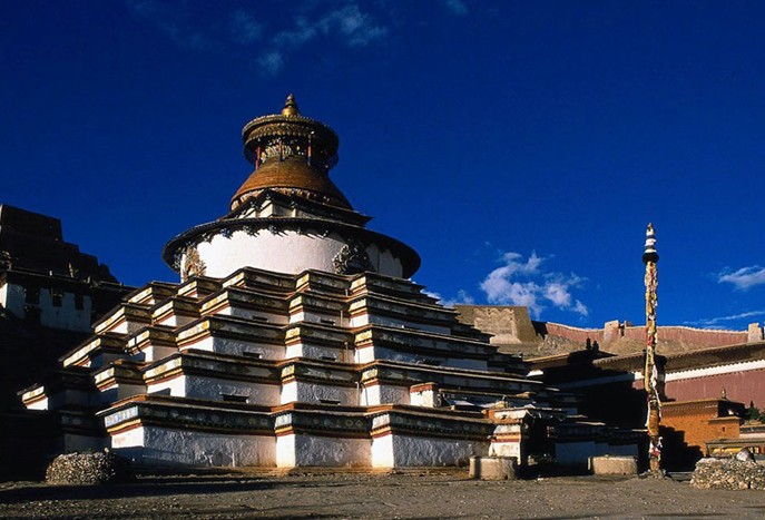 白居寺屬全國重點(diǎn)文物保護(hù)單位,位于西藏江孜縣境內(nèi)。十五世紀(jì)初始建,是藏傳佛教的薩迦派、噶當(dāng)派、格魯派3大教派共存的一座寺廟。白居寺是漢語名稱,藏語簡稱“班廓德慶”,意為“吉祥輪大樂寺”,位于江孜縣城東北隅,拉薩南約230千米處,距日喀則東約100多千米,海拔3900米。白居寺始建于明宣宗宣德二年(1427年),歷時(shí)10年竣工。它是一座塔寺結(jié)合的典型的藏傳佛教寺院建筑,塔中有寺、寺中有塔,寺塔天然渾成,相得益彰,它的建筑充分代表了13世紀(jì)末至15世紀(jì)中葉后藏地區(qū)寺院建筑的典型樣式。