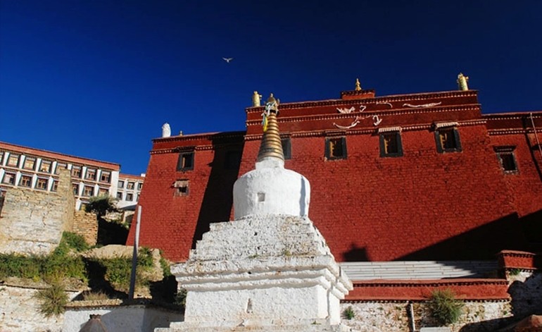 該寺始建于公元7世紀(jì)吐蕃法王松贊干布時(shí)期,但公元8世紀(jì)時(shí)被毀。1834年由苯教怙主絳袞•達(dá)瓦堅(jiān)贊經(jīng)十世達(dá)賴?yán)锖桶耸腊喽U額爾德尼及攝政王的同意主持修建。1959年被列為國家重點(diǎn)保護(hù)寺廟。當(dāng)時(shí)有1個(gè)大經(jīng)堂,5個(gè)殿堂,7個(gè)康村,500多名苯教徒。杜康大殿是該寺主要建筑,殿內(nèi)立柱64根,是該寺進(jìn)行宗教活動(dòng)的主要場所。大殿左右兩側(cè)為甘珠拉康和丹珠拉康,正面為集會(huì)殿,集會(huì)殿前面有座神殿,有29根立柱。殿中供奉的主要神像有:密宗本尊大威德金剛、女神卓瑪、苯教祖師辛饒、門日寺(苯教祖寺之一,在南木林縣,已毀)創(chuàng)始人念美•喜饒堅(jiān)贊以及熱拉雍仲林寺創(chuàng)始人絳袞•達(dá)瓦堅(jiān)贊等,質(zhì)地多為銅質(zhì)鎏金。從杜康大殿拾級(jí)而上,版權(quán)所有山東聊城聊之旅國際旅行社有限公司,轉(zhuǎn)載必究!是一個(gè)環(huán)形長廊,長廊四周除神殿外,還有僧人的修行室、保存法器的內(nèi)庫,以及收藏歷代經(jīng)版的印經(jīng)版室。該寺“萬佛一見得解脫”塔殿內(nèi)有5座歷任塔布和經(jīng)師的靈塔。怙主殿內(nèi)有怙主達(dá)瓦堅(jiān)贊靈塔等5座。拉章南捷殿內(nèi)供有苯教南巴捷瓦神,高約12米。護(hù)法神殿內(nèi)供有吉祥天母神等。藏經(jīng)殿內(nèi)有苯教《甘珠爾》和《丹珠爾》金汁書寫的經(jīng)書。寺廟周圍種滿林木桃樹,每到春夏之際,這里氣候宜人,環(huán)境幽雅,游人不絕。