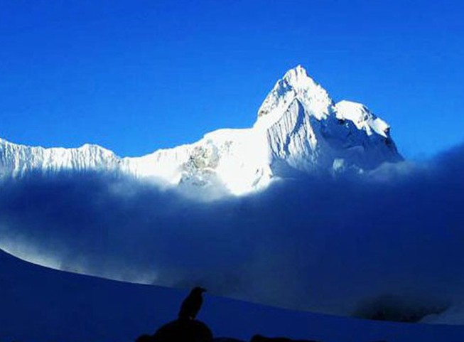 達(dá)果雪山位于那曲地區(qū)的尼瑪縣境內(nèi),是古象雄部落的神山之一,也是藏區(qū)4大雪山之一。山勢(shì)巍峨雄偉,千姿百態(tài)。峰頂銀色的冰雪閃著光芒,直插云端,四面有7座山峰如7位勇士坐落于主峰周圍,人們稱7兄弟或勇士7軍。此外,在達(dá)果雪山的周圍還有8座雪山,叫做“噶聶日巴切杰”,統(tǒng)稱達(dá)果七峰八嶺。據(jù)說,這幾座山為古象雄諸神的聚集處,也是象雄地區(qū)360座山峰的主脈。