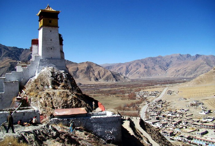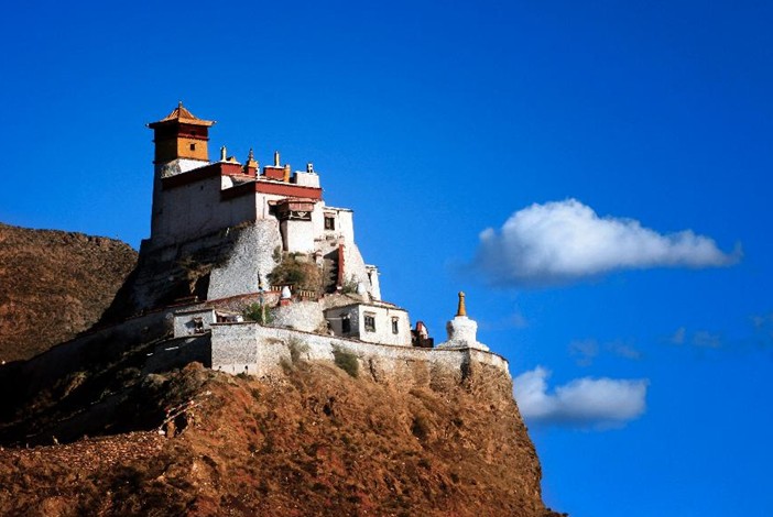 雍布拉康,藏語意為“母子宮”,是西藏歷史上第一座宮殿,也是西藏最早的建筑之一,位于山南地區(qū)澤當(dāng)鎮(zhèn)東南,高聳于雅礱河?xùn)|岸扎西次日山頂。相傳是苯教徒于公元前2世紀(jì)為第一代藏王聶赤贊普建造,后來成為松贊干布和文成公主在山南的夏宮,五世達賴時改為黃教寺院。 雍布拉康主要供奉釋迦牟尼佛像。宮殿內(nèi)的壁畫上生動地描繪了西藏的第一位國王,第一座建筑,第一塊耕地的歷史故事。 雍布拉康分為兩部分,前部是一幢多層建筑,后部是一座方形高層碉堡望樓,與前部相連。公元5世紀(jì),藏王托托念贊時期,傳說一本佛經(jīng)從天而降,正好跌在雍布拉康宮頂,當(dāng)時無人能識。有圣人斷言,到了公元7-8世紀(jì)就有人能解讀此書。所以這本書被很好地保留在雍布拉康。