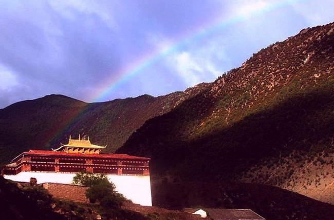 雍布拉康位于澤當(dāng)11公里的扎西次日山上。“雍布”意為“母鹿”,因扎西次山形似母鹿而得名,“拉康”意為“神殿”。雍布拉康是西藏歷史上第一座宮殿。據(jù)史書記載始建于公元前二世紀(jì)。松贊干布暑期由宮殿改作寺廟。文成公主初來西藏時每到夏季都會和松贊干布來這里居住。至五世達賴時又在原碉樓式建筑基礎(chǔ)上修了四角攢尖式金頂,并將其改為黃教寺院。
