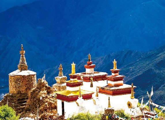 達拉崗布寺--修建于公元1121年,由米拉日巴(達布噶舉派創(chuàng)始人)的大弟子達布拉吉•索朗仁欽創(chuàng)建。該寺位于海拔4200米的半山腰上,人在其中仿佛置身于虛幻飄渺的天上仙境,四周叢林茂密,環(huán)境優(yōu)美,景色宜人,是區(qū)內著名的佛教圣地之一。寺廟建筑雄偉壯觀,氣勢磅礴,歷經(jīng)八百八十余年而不衰。達拉崗布寺在十年“文革”動亂期間被毀,寺內文物遭到一定程度的破壞。十一屆三中全會以后,達拉崗布寺得到了重新修繕,寺內現(xiàn)存有唐卡等大量文物。如今又成為眾多虔誠信仰者的佛教名寺。達拉崗布寺因此成為“嘎舉派”(白教)的母寺而譽滿雪域高原。