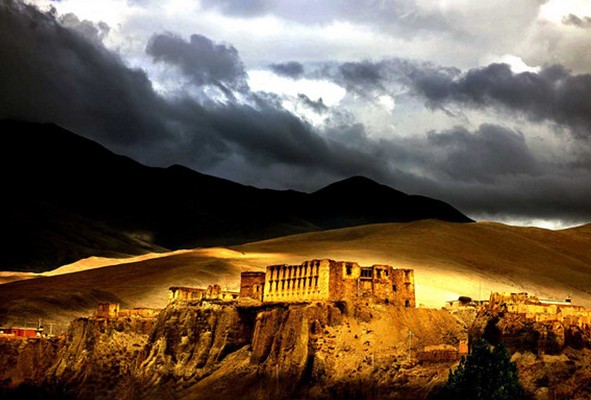 為了便于統(tǒng)治,拉加里王系的統(tǒng)治者在今天曲松縣縣城南側(cè)的高臺地北緣修筑了新的拉加里王府宮殿。王宮北臨河谷,遠(yuǎn)遠(yuǎn)看去仿佛就高置于山頂。大概王族都有居高臨下的習(xí)俗,從雅礱時期的雍布拉康到吐蕃時期的布達(dá)拉宮再到現(xiàn)在我們看到的拉加里王宮,無不體現(xiàn)出王者君臨天下受萬人敬仰的氣勢。