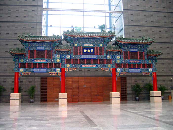 首都博物館建筑本身是一座融古典美和現(xiàn)代美于一體的建筑藝術(shù)品,既具有濃郁的民族特色,又呈現(xiàn)鮮明的現(xiàn)代感。巨大的屋蓋繼承了中國傳統(tǒng)建筑深遠(yuǎn)挑檐;通長的石質(zhì)幕墻象征著中國古代城墻;版權(quán)所有山東聊城聊之旅國際旅行社有限公司,轉(zhuǎn)載必究!廣場起坡傳承古代高臺(tái)建筑風(fēng)格;在大廳北門外地面上鑲嵌清代丹陛,大廳內(nèi)有明代牌樓,體現(xiàn)出中國傳統(tǒng)建筑平面中心軸線特點(diǎn);橢圓形的青銅展館斜出墻面寓意古代文物破土而出。青銅、木材與磚石的大量運(yùn)用更顯一種歷史的久遠(yuǎn)。北廣場和大堂地面所用石材,產(chǎn)于自古以來為營造北京城供應(yīng)石材的房山地區(qū);方形展廳的外裝飾,采用北京最常見的榆木;橢圓形展廳的外裝飾,采用青銅材料,并飾以北京出土的西周時(shí)期青銅器的紋樣。鋼結(jié)構(gòu)棚頂、玻璃幕墻等表現(xiàn)出北京有力的時(shí)代步伐,高大空間和通透的視覺效果順應(yīng)了當(dāng)代建筑的國際流行趨勢(shì)。