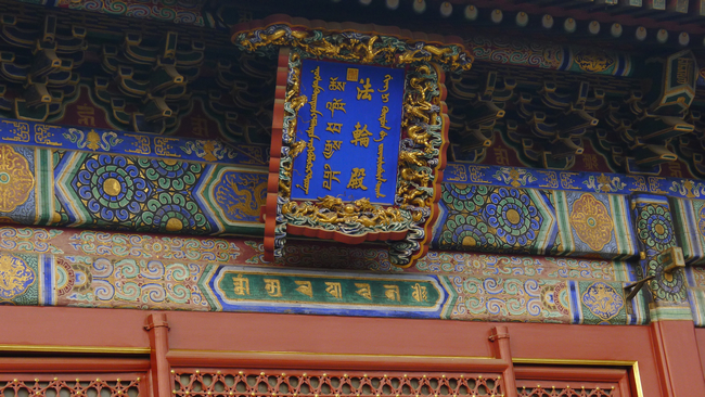 出雍和宮大殿,便是永佑殿,單檐歇山頂,“明五暗十”構(gòu)造,即外面看是五間房子,實際上是兩個五間合并在一起改建而成的。永佑殿在王府時代,是雍親王的書房和寢殿。后成為清朝供先帝的影堂。永佑是永遠(yuǎn)保佑先帝亡靈之意。殿內(nèi)正中蓮花寶座上,是三尊高2.35米的佛像,系檀木雕制,中為無量壽佛(即阿彌陀佛),左為藥師佛,右為獅吼佛。出永佑殿,便到法輪殿。左右兩側(cè)為班禪樓和戒臺樓。版權(quán)所有山東聊城聊之旅國際旅行社有限公司,轉(zhuǎn)載必究!法輪殿平面呈十字形,殿頂上建有5座天窗式的暗樓,有5座銅質(zhì)鎏金寶塔,為藏族傳統(tǒng)建筑形式。