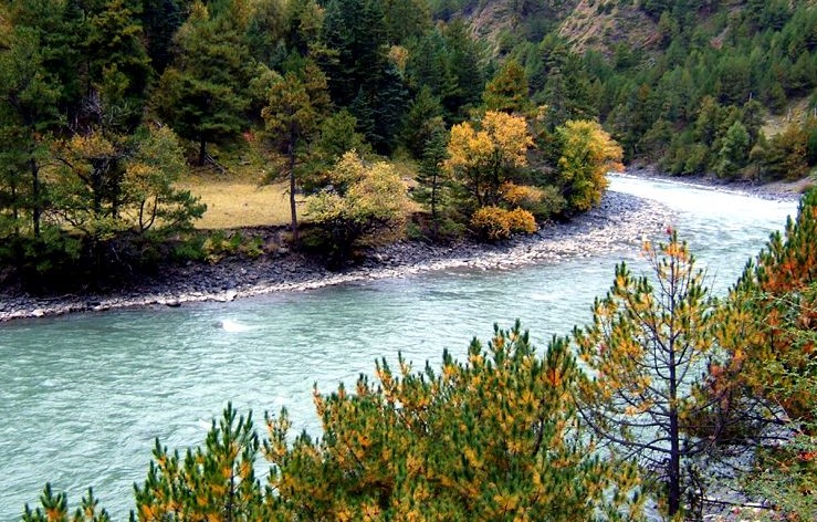 扎曲河谷風(fēng)景奇特,春夏秋冬,兩岸風(fēng)景隨四季變化,多姿多彩。春夏時節(jié),溝里綠樹遍野,蒼松古柏,傲然挺立,放眼望去,漫山皆綠,繁花爛漫,溝里到處芳香四溢,山上云蒸霞蔚,景色忽隱忽現(xiàn)。到處流水潺潺,山底江水清澈如綠帶,水波粼粼之間,有游魚嬉戲,讓人仿佛進(jìn)入了夢幻境界。