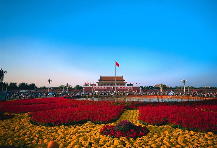 飽經(jīng)500余年風(fēng)雨滄桑的天安門廣場是當(dāng)今世界上最大的城市廣場。它不僅見證了中國人民一次次要民主、爭自由,反抗外國侵略和反動統(tǒng)治的斗爭,更是共和國舉行重大慶典、盛大集會和外事迎賓的神圣重地。建國后的天安門廣場經(jīng)歷了三次大規(guī)模改、擴(kuò)建工程,使古老的廣場更加宏偉壯觀,成為中華民族凝聚力和中國繁榮昌盛的象征。