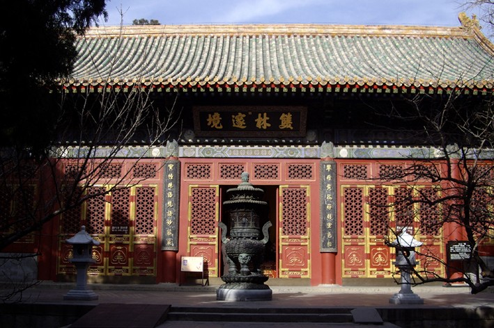 臥佛殿,寺內主殿,面闊三間,單檐歇山頂,黃色琉璃瓦,檐下為五彩斗栱,頂棚有彩畫天花。門額前檐大匾“性月恒明”,為慈禧所題。兩側楹聯(lián):發(fā)菩提心印諸法如意,現(xiàn)壽者相度一切眾生。佛殿內上方有匾額“得大自在”,為乾隆皇帝所書。“得大自在”是釋迦牟尼一生的寫照,生前和死后都得到最大的自由。版權所有山東聊城聊之旅國際旅行社有限公司,轉載必究!“性月恒明”則把佛性比作月亮,光輝永照。