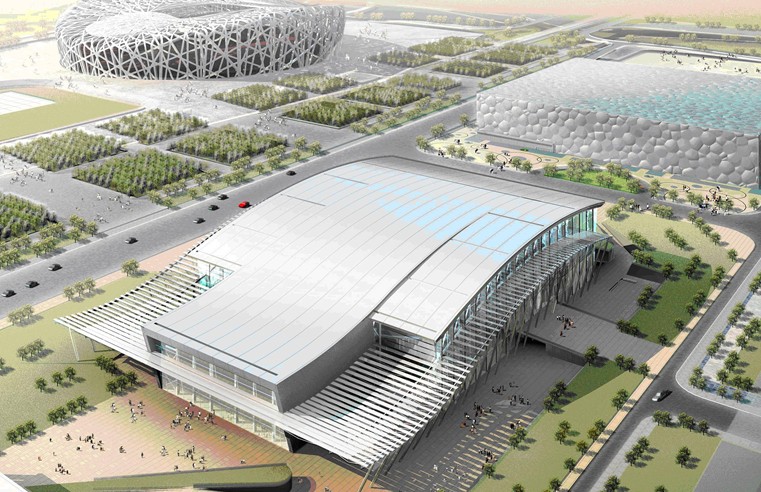 國(guó)家體育館國(guó)位于奧林匹克公園中心區(qū)的南部,與“鳥巢”和“水立方”和國(guó)家會(huì)議中心比鄰而居。國(guó)家體育館由主體建筑和與之相連的熱身館以及室外環(huán)境組成,賽時(shí)可容納觀眾約1.8萬人。
