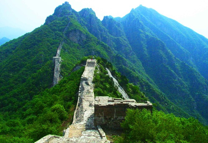 是北京一段最險峻、雄奇的長城,自然風(fēng)化嚴(yán)重,沒有任何人工修飾,自牛犄角邊、南大樓、鬼門關(guān)、東西縮脖樓、東西油簍頂,箭扣梁、、將軍守關(guān)、天梯、鷹飛倒仰、北京結(jié)到九眼樓(望京樓)綿延20多公里,充分展現(xiàn)了長城的驚、險、奇、特、絕,能領(lǐng)略到原汁原味的古老的長城景觀。天梯、鷹飛倒仰、北京結(jié),九眼樓、一段路最險,從東向西走稍好一點,從西向東走更艱難。遇見倒塌的路段要繞出長城,在城墻的石縫里插上樹枝做梯子,再爬墻進(jìn)去;天梯是一段70度陡坡、70-80米長的長城,版權(quán)所有山東聊城聊之旅國際旅行社有限公司,轉(zhuǎn)載必究!最窄處60公分寬,臺階40-50公分高、15公分臺面,要四肢并用地爬;鷹飛倒仰有一處長城直立倒塌,要南轅北轍地繞道迂回過去,下山70-80度陡坡,要不抓住樹枝,很難站?。槐本┙Y(jié)到望京樓一段在長城里,東側(cè)是城墻,西側(cè)是灌木,沒有臺階,非常難走。