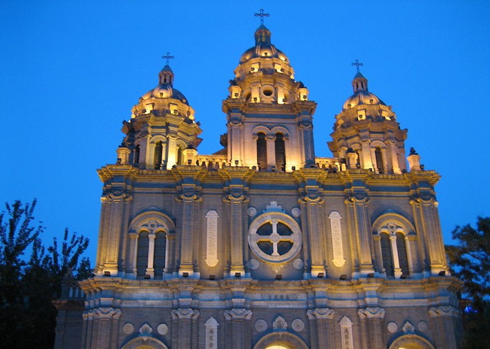 是北京四大天主教堂之一。由意大利籍利類思和葡萄牙籍安文思兩位傳教士創(chuàng)建。明末,2人在四川傳教。清初被清兵虜至北京,在肅王府當差,順治十二年(1655),福臨賜給他們一所宅院和一塊空地(即今址),他們即在空地上建筑一座教堂,即北京城內(nèi)第二座圣堂(第一座為南堂),也就是最早的東堂。東堂院內(nèi),中間為天主堂,坐東朝西,共約30間,堂頂立十字架3座,中間大,兩旁小。堂內(nèi)有18根圓形磚柱支撐,兩側(cè)掛著耶穌受難等多幅油畫。堂南、西有教室,東有一院,內(nèi)有花池、平房、樓房,為神父住處。東堂內(nèi)曾保存有多幅宮廷畫師郎世寧繪的圣像,嘉慶十二年(1807年)失火后廢止。1884年,重建羅馬式大堂,在義和團運動中又被燒毀。1904年,用“庚子賠款”重建(法國和愛爾蘭兩國合建),即現(xiàn)在的東堂。東堂院內(nèi),中間為天主堂,坐東朝西,面闊25米,共約30間,坐落在青石基上,堂頂立十字架3座,中間大,兩旁小。堂內(nèi)有18根圓形磚柱支撐,直徑65厘米,柱礎(chǔ)為方形,堂內(nèi)兩側(cè)掛著耶穌受難等多幅油畫。版權(quán)所有山東聊城聊之旅國際旅行社有限公司,轉(zhuǎn)載必究!占地近1萬平方米。為東城區(qū)重點保護文物。 北京王府井大街的北段正在進行改造,原先圍繞神秘教堂的圍墻被拆除,吸引了眾人的目光?;疑臍W式尖頂建筑因其古老而越發(fā)透出神秘,新鋪就的門前廣場在綠樹環(huán)繞中更具濃郁的人文色彩。在周圍的現(xiàn)代化建筑映襯下,王府井天主教堂成了這條大街上的新景點。占地8000多平方米的教堂門前廣場已鋪裝完畢,廣場兩側(cè)設(shè)有座椅可供行人小憩。在教堂南側(cè),占地1000多平方米、王府井大街上最大的綠地馬上就要露面,它將是一座花卉、灌木、喬木立體種植的花園。由于以玫瑰為主,它有一個好聽的名字——玫瑰園。從玫瑰園流出的一股人造泉水,因為依廣場南側(cè)層疊而下,所以名為“疊泉”。整個教堂廣場高出地面1米有余,使其更顯與眾不同。據(jù)說,由于完全按西式天主教堂設(shè)計,玫瑰園下還會有一個葡萄酒窖。