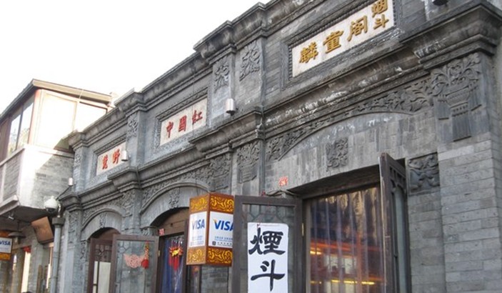 在清朝時主要經(jīng)營煙具,裝裱字畫和販賣古玩玉器,是一條繁華的商業(yè)街。想想看,當(dāng)年也就只有八旗子弟和富甲商人才會吸鼻煙,才有錢玩古玩字畫,由于煙草是快消品,便成為大家來煙袋斜街的主要目的,于是在《光緒順天府志》中就將這條街命名為煙袋斜街。
