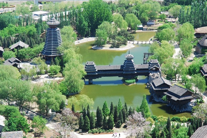為更加真實(shí)、全面地營造各民族生活環(huán)境,北京中華民族博物院(中華民族園)在園區(qū)中特別建造了園林自然景觀。這些園林自然景觀將各民族的生活同溶洞、瀑布、懸崖、石窟、棧道、異型樹木、河湖、農(nóng)田有機(jī)地融合在一起,便于觀眾更加直觀地了解各民族生活環(huán)境,也增強(qiáng)了參觀的趣味性、參與性。