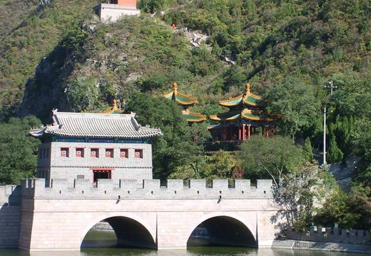 4.軍事防御范圍廣,周圍面積50多公頃,南北券城相距約850米左右,東山頂至西山頂直線距離1150米,防御設(shè)施有南、北券城、城樓、水門、水閘、敵樓、鋪房、烽隧、角樓、炮臺(tái)等。長(zhǎng)城上的敵樓、烽燧、鋪房,是古代打仗時(shí)作為掩體和士兵居住的地方,共修復(fù)了25座,這些按明代規(guī)制燒的城磚,都是靠人工、牲畜往上運(yùn)送材料。高大雄偉的城樓,南北各有一座,樓為三重檐歇山式綠琉璃瓦翦邊,高21米,下面城臺(tái)高10米。城樓是指揮作戰(zhàn)的中心,所以建造高大。站在樓上,可以一目了然,有利于觀敵情。城臺(tái)下面有券門通甕城。甕城即大城門外的月城,用以增強(qiáng)城池的防御力量。