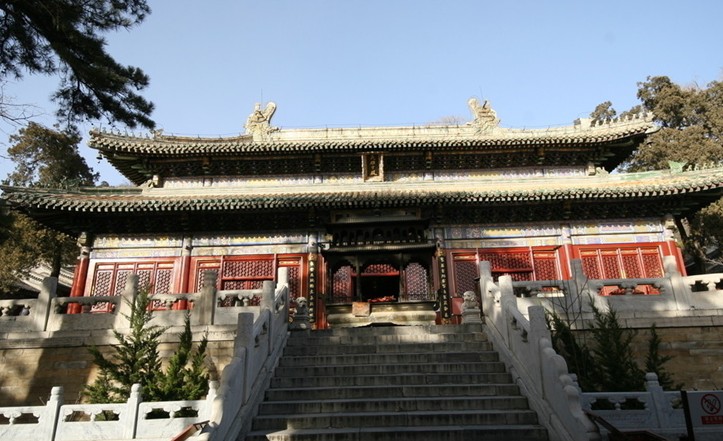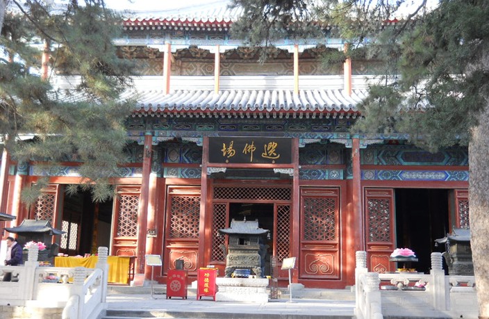 寺院東路由庭院式建筑組成,有方丈院、延清閣和清代皇帝的行宮院,主要建筑有萬(wàn)壽宮、太后宮等。院中幽靜雅致、碧瓦朱欄、流泉淙淙、修竹叢生,頗有些江南園林的意境。院內(nèi)有流杯亭一座,名猗軒亭。