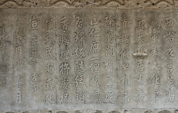 云居寺是佛教經(jīng)籍薈萃之地,寺內(nèi)珍藏著石經(jīng)、紙經(jīng)、木版經(jīng)號稱“三絕”。“石刻佛教大藏經(jīng)”始刻于隋大業(yè)年間(605年),僧人靜琬等為維護正法刻經(jīng)于石??探?jīng)事業(yè)歷經(jīng)隋、唐、遼、金、元、明、六個朝代,綿延1039年,鐫刻佛經(jīng)1122部、3572卷、14278塊。象這樣大規(guī)???,歷史這樣長久,確是世界文化史上罕見的壯舉,堪與文明寰宇的萬里長城、京杭大運河相媲美,是世上稀有而珍貴的文化遺產(chǎn)。被譽為“北京的敦煌”、“世界之最”。“房山石經(jīng)”是一部自隋唐以來綿延千年的佛教經(jīng)典,不僅在佛教研究、政治歷史、社會經(jīng)濟、文化藝術等各方面蘊藏著極為豐富的歷史資料。而且在書法藝術上有著重要的文化價值和藝術價值。
