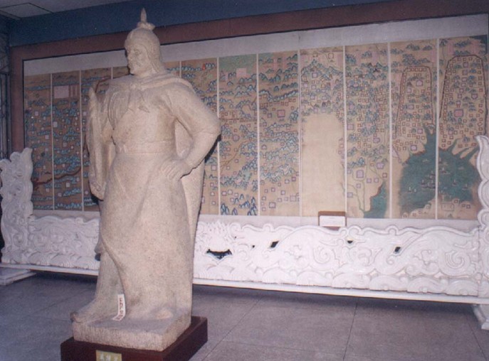 序廳:迎門矗立著《徐達塑像》,紀念他明洪武十四年(1381)奉詔修筑長城,建關(guān)設(shè)衛(wèi)并定名“山海關(guān)”的事績。