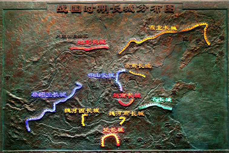 長城歷史廳:以《半坡壕塹》模型展示7千年前,氏族部落人們圍繞居住區(qū)挖掘的圍溝,用以防洪阻獸,保護氏族安全,起著墻與城之作用。文字與照片說明長城起源于春秋戰(zhàn)國時期。隨著戰(zhàn)爭規(guī)模的擴大,兵器種類的更新,秦、漢、金、明各代修筑的長城遠袤萬里。