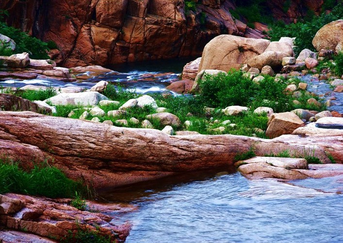 沿開花廠峪村進溝,不斷往前走,能抵達北龍?zhí)?,踩著碩大的鵝卵,尤感山路坎坷難行。抬眼望去,倒是滿眼的景色。“兩岸青山相對出,潺潺溪水迎面來”。腳下鵝卵縫里的小溪,靜靜流淌著這山谷的苦衷。明澈見底的溪水里,游來游去著深思的魚兒。溝旁的山上怪石林立,同業(yè)的游人不住指指點點,阿誰像王母娘娘的寶座、阿誰像扛槍的兵士、阿誰像企鵝……是??!這花廠峪的石頭,還真是一景!英姿勃發(fā)、千姿百態(tài)、肅靜莊嚴(yán)……在巨型長塊石頭上,我們看到很多像天書一樣密密層層的小淺坑,隨行的小伙子說是槍彈洞,讓人聯(lián)想到毛主席的詩“昔時酣戰(zhàn)急,彈洞前村壁。點綴此關(guān)山,今朝更美觀”。進入了峽谷,給人們的第一覺得是奇、特、險。這里四處活動著美,四處彌漫著美?;◢弾r、火山巖,經(jīng)由大天然巧奪天工的雕刻構(gòu)成了神志各別的天然景象。峽谷內(nèi)十分分明的巷子,往返往來不斷穿水路的覺得超等棒,看滿山的紅葉,點綴著這怪石林立,真是剛?cè)嵯酀⑾嗟靡嬲?。版?quán)所有山東聊城聊之旅國際旅行社有限公司,轉(zhuǎn)載必究!高山是堅實的臂膀,怪石是傲然的風(fēng)骨,紅葉是漂亮的衣裳,溪水是流不盡的柔情。這一路走去,就是這山一程水一程,滿眼紅葉滿山情!走至岔路口,是一片大石頭,大得驚人,有的像床,有的像房,有的就像一大片平地,水石相依。坐在那片大石頭上野餐是最美但是的事。