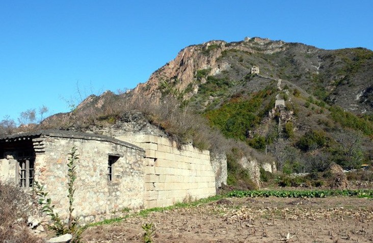 “因地形,用形制塞”是明長城常用的一種辦法,花廠峪口在低洼處筑高墻,應(yīng)用大山作為樊籬,到達了防護結(jié)果。圖為花廠峪南山上的障墻,外側(cè)似狼牙,直上山岳。老嶺在陳舊的燕山東端,山勢峻峭險峻,樹林茂盛,古長城的殘垣沿著山脊連綿向遠方?;◤S峪就是老嶺深處的一個山村,村子人家不多,散住在方圓約十幾公里的局限,隔個山梁的就算鄰人,從這家到那家上要走多半個小時。