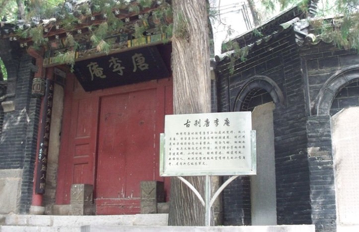 《鄒平縣志》載:相傳古有唐李二仙,修真于此山,故名唐李庵。約建于金元年間。山門東面墻上鑲嵌二通石碑,一為明隆慶元年十一月,鄒平人張應(yīng)貞撰寫的《重修唐李庵記》;另一為康熙十年青城人董朱袞撰文《重修唐李庵碑記》。山門西面墻上亦有古碑二通,分別是嘉慶十一年成瓘所撰《重修唐李庵之碑》,及道光二十五年鄒平人石顯文所寫《唐李庵碑記》。石碑背面皆正楷陰刻著重修時(shí)捐資人的姓名及出資數(shù)目。