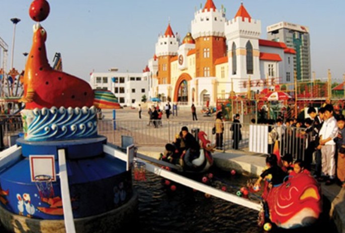 樂園坐落在河北廊坊金光道北,新開路東,永豐道南,市區(qū)繁華地段??偼顿Y4000萬元以上,其中基礎(chǔ)設(shè)施投資2500萬元,娛樂設(shè)施投資1500萬元??傉嫉孛娣e約150000平米,其中商業(yè)用房建筑面積約25360平米,園內(nèi)有過山車、空中列車、自控飛船、激流勇進(jìn)、碰碰船等大型娛樂設(shè)施15項(xiàng),還有近7000平米的人工湖供游客進(jìn)行水上活動(dòng)。兒童樂園的綠化用地約8成平米,可稱得上是一個(gè)“綠色樂園”。