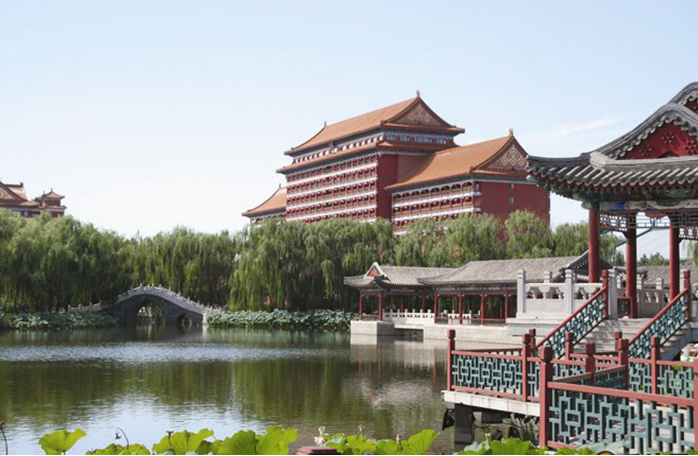 它外仿明清時期北京都城的城垣風貌,采用“縮地不縮景”的方式,按照1:1的比例復原了老北京“內九外七”的城垣格局。由周邊5公里的空腹城墻、22座錯落有致的城樓、具有濃郁中國傳統(tǒng)文化風格的建筑群和獨具匠心的皇家園林組成的景園內,建有設施完備的大型現(xiàn)代化國際會展中心、五座建筑風格各異的星級酒店;外城東區(qū)為圓明勝景區(qū),樓、臺、亭、榭體現(xiàn)了中式皇家園林的風范;外城西區(qū)以王府、四合院為代表的古城春色區(qū)盡顯六朝古都的宅府風貌;前門商業(yè)街坐落在兩區(qū)之間,崇文門的西部為康體健身中心;宣武門被大型的嬉水樂園所簇擁;古色古香的正安宮大酒店是第一城的標志性建筑。中華佛教藝術博物院、金色藝術大廳、高爾夫草坪式花園構成了第一城千姿百態(tài)的多種畫卷。版權所有山東聊城聊之旅國際旅行社有限公司,轉載必究!整體風格盡現(xiàn)華夏古今文化之精華、神州民族建筑之異彩,是傳統(tǒng)美學與現(xiàn)代建筑技術的完美結合。