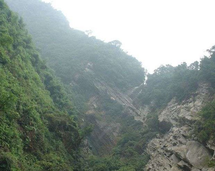 聚仙谷全谷長2500米,西南東北走向,逐步成梯形到頂峰海拔600米。溝深山險,兩邊巖壁如刀削一般,巖高數(shù)十丈,溝底巖閑上,長有老榆、銀杏、白臘、黑棗各種一尺多粗的古樹,巖壁上長有多年生長的喬灌木植物,溝內有各種名貴藥材,夏季有清泉溪水下游,游人從溝底仰頭望天,只見一條藍線,故一線天之稱。