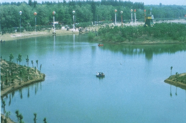愉湖風(fēng)光區(qū),突出藍(lán)天、碧水、綠地的主題,以大片水面和大面積的森林景觀相映成趣。建有360畝的 沐浴庫(kù)區(qū),筑有假山、湖心島,配有游船、皮滑艇、動(dòng)力風(fēng)車等游樂設(shè)施。栽植榆、五角楓、金絲柳等觀賞植物28種17萬(wàn)株,栽植草皮5.1萬(wàn)平方米。疏林密地,青少年活動(dòng)區(qū),水上風(fēng)光區(qū),別墅區(qū),休療區(qū)等。與對(duì)餐交通干道臨南路融為一體,以大面積的水面和樹林塑造景觀。