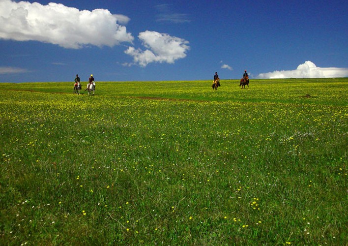 在遼闊的山頂草原上,您可以策馬揚(yáng)鞭,自由馳騁;您可以享用美味的野餐、燒烤,參加篝火晚會(huì),觀賞歌舞;可以野營(yíng)、睡帳篷,也可以享受深山峽谷中的豪華洗浴,乘坐凌空跨越幾道山梁的索道,駕駛滑翔機(jī)空中飛翔;在河畔森林中休閑納涼,在山坡小樓里讀書或發(fā)呆,和心愛(ài)的人一起看星星……