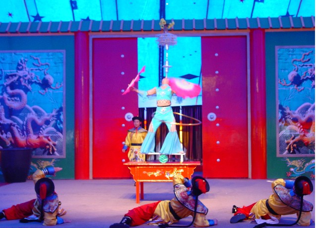以展示集現(xiàn)代聲、光、電及各種高科技技術(shù)于一體的大型綜藝性雜技晚會(huì)。