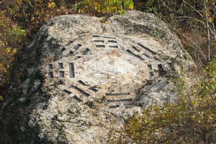 與石花頂隔溝對峙,山城有古城遺跡?,F(xiàn)存有人工鑿刻的石椅、石旗桿、定向盤等。石椅坐南朝北,下臨深淵,兩側(cè)有平臺(tái),近處三個(gè)山峰上各有一小石椅。