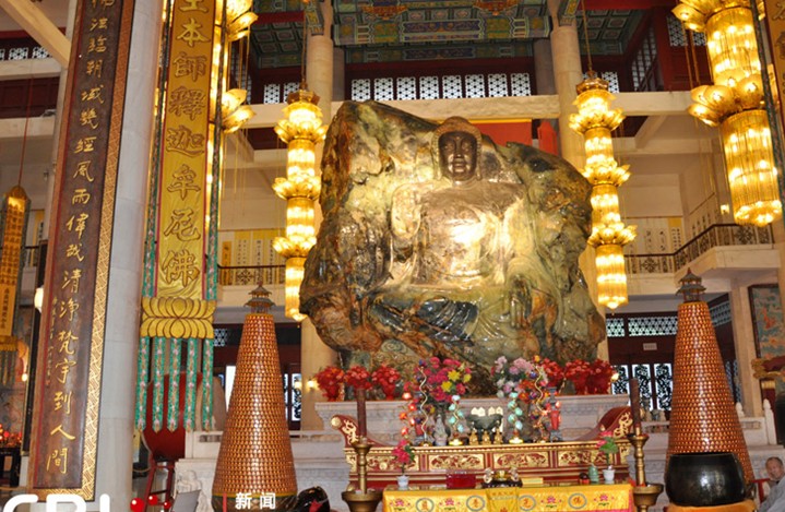 在觀音一側,鰲魚擺尾,把幾縷淡黃色的魚尾紋狀的玉石拋向上方。來自武漢的德修禪師悟出這淡黃色的玉石構成了隸書體的“真”字。版權所有山東聊城聊之旅國際旅行社有限公司,轉載必究!大師臨行前,題寫了“洪大悟真”四個字,旨在告訴人們:玉佛上出現(xiàn)的奇跡都是真的,讓人們用心去悟徹佛法的真諦。