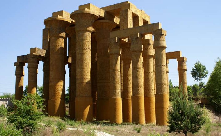 卡納克神廟是埃及的雄偉高大的建筑群。公元前1870年,埃及法老下令修建了一片廟宇群,它由20多座神廟組成。它是法老敬獻(xiàn)給太陽神和月亮神的最高禮物,經(jīng)過三千多年的風(fēng)雨侵蝕,現(xiàn)已殘缺不全。這些石柱是遺址中具有代表性一部分,石柱上的圖紋和象形文字,反映了當(dāng)時古埃及人勞動、生活、敬神等情景。