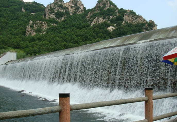 “雙龍壩”全長192米,高15米,形成約五公里長的“英納湖”水面,水面可延伸至冰峪北門(紅房子),形成“高峽出平湖”景觀,在這里既有桂林山清水秀的特色,又有三峽雄峻奇?zhèn)サ娘L(fēng)姿。該區(qū)域西岸奇峰林立,風(fēng)景各異可乘船游覽欣賞新開發(fā)的景點。壩前形成湖面,可開展旅游、滑船、垂釣等水上游樂項目,冬天還可滑冰、建滑雪場。壩后則形成瀑布,游人可在廓道中觀賞瀑布和山水風(fēng)景,有入“水簾洞”感覺。同時又有天壁峰至小峪河“別有天”的環(huán)山步道,連通英納河與小峪河水系。