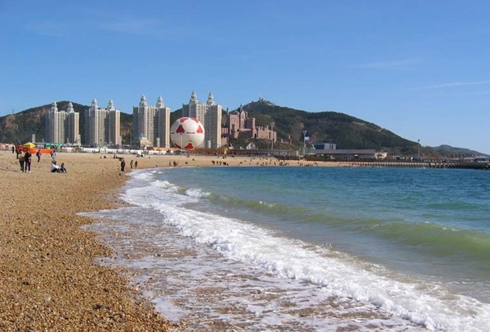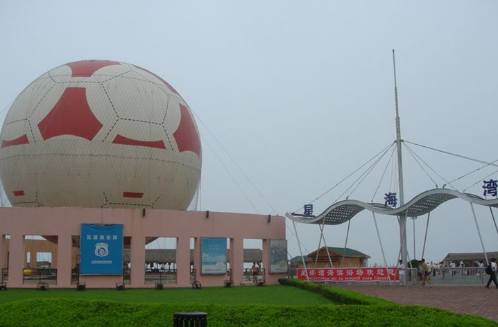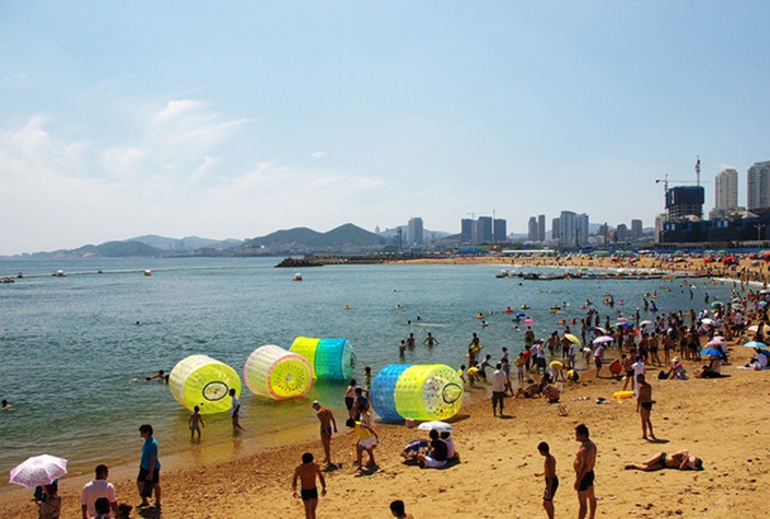 星海灣海水浴場是目前中國最大的人工海水浴場,由3個小浴場組成。沙灘全長2000米,全部由從北戴河運進的優(yōu)質(zhì)沙鋪成。