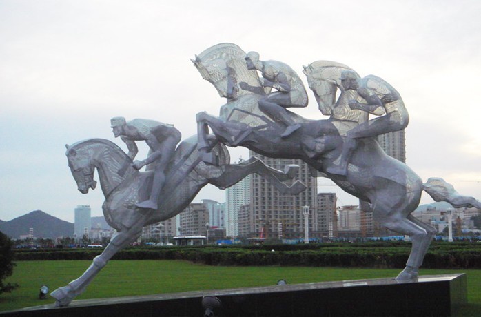 總占地面積176萬平方米,廣場中心由999塊四川紅色大理石鋪設而成,紅色理石的外圍是黃色大五角星,紅黃兩色象征著炎黃子孫。廣場周邊還設有5盞高12.34米的大型宮燈,由漢白玉柱托起,光華燦爛,與華表交相輝映。廣場四周,雕刻了造型各異的9只大鼎,每只鼎上以魏碑體書有一個大字,共同組成"中華民族大團結(jié)萬歲",象征著中華民族的團結(jié)與昌盛。從中心廣場南行,便是"百年城雕"。百年城雕的盡頭是打開的書形廣場,面對無垠的大海,寓意著百年后的大連又翻開了新的一頁。從中心廣場北行,則是會展中心,它是集展覽、會議、貿(mào)易、金融、娛樂為一體的具有國際一流水平的現(xiàn)代化建筑。貫穿廣場南北的中央長廊,建有噴泉水景大道。整個廣場綠草茵茵,版權(quán)所有山東聊城聊之旅國際旅行社有限公司,轉(zhuǎn)載必究!每隔20米的航標石柱燈一線排開直通大海,典雅肅穆,寧靜致遠。中心廣場面積4.5萬平方米,這是一個紀念香港回歸的工程。 廣場中心全國最大的漢白玉華表,高19.97米,直徑1.997米。華表底座附有八條龍,柱身雕著一條龍,九條龍寓意中國九州。華表頂端坐著金光閃閃的望天吼,高2.3米。圍繞華表的的漢白玉石柱高12.34米,各自托起的是一盞宮燈。廣場中心仿效北京天壇圜丘的設計,由999塊四川紅大理石鋪成,大理石上刻著天干地支、24節(jié)氣和12生肖,站在自己的生肖上攝影 ,可以帶來好運。廣場內(nèi)園直徑199.9米,外圓直徑239.9米,寓意2399年大連將迎來建市500周年。在1999年添加了書頁建筑和腳印等雕塑。