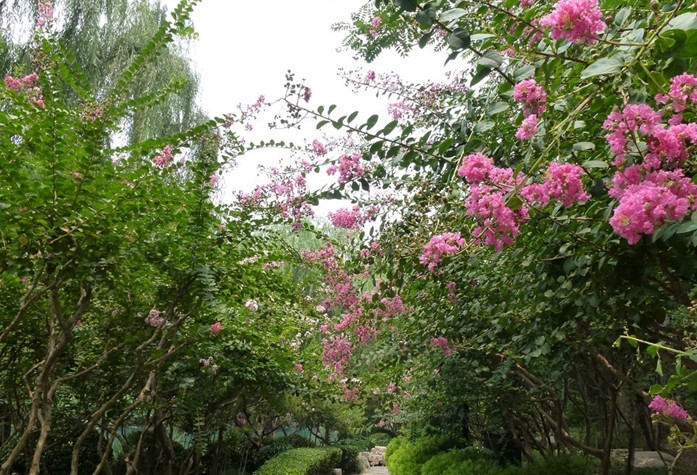 濟(jì)南市環(huán)城公園建在護(hù)城河沿岸,全長(zhǎng)6.26公里。以?xún)?yōu)美典雅的園林建筑和碧水翠,把趵突泉群、珍珠泉群、黑虎泉群、五龍?zhí)度杭?ldquo;天下第一湖”——大明湖連接在一起,形成了以湖心泉水為特色的園林綠化中心,使“四面荷花三面柳。一城山色半城湖”的景色更加秀麗。環(huán)城公園東護(hù)城河沿線(xiàn)為四季花園,自北向南依次為冬景園、春景園、夏景園和秋景園。