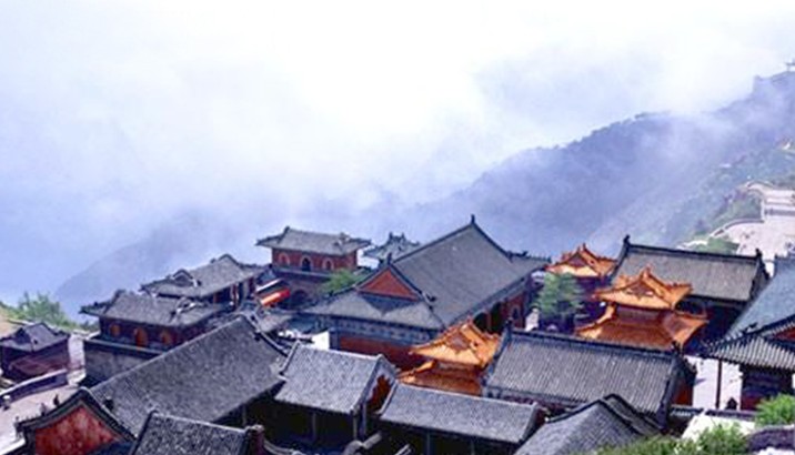 西神門與天街相連,東神門與通玉皇頂?shù)谋P道相接,兩門形式相同,均石砌拱 形門洞,高3.4米,寬3.25米,進(jìn)深5.4米。上筑閣樓各3間,面闊8.8米,進(jìn)深3.5 米,通高4.9米,二柱六檁六架梁,重梁起架,卷棚歇山頂,施墨線小點(diǎn)金彩繪。