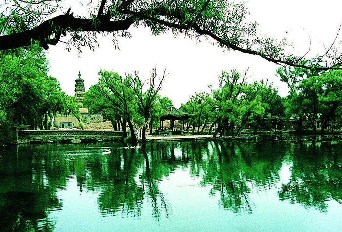 位于淶源縣城南側(cè),河溪縱橫,白楊綠地??蓱蛩?、摸魚、篝火、燒烤、休閑、納涼極理想。拒馬河的源頭。泉水從淶源縣城涌出地面,涌水量3m3/秒,是中國(guó)北方最大的泉。源頭一側(cè)的"興文塔"始建于唐天寶三年(744年),是世界上唯一的斜剎塔,由唐代鑄錢作坊捐資建造。