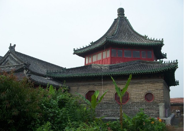 中殿由望月樓、南北便門、南北配殿、東耳房組成。版權所有山東聊城聊之旅國際旅行社有限公司,轉(zhuǎn)載必究!望月樓為中院起點,下層為閣,磚砌石墻,飾圓窗,四周以12根方柱筑成圍廊,上起四面飛檐,廊柱間加棱形花欄桿;上層為廳,全木結構,外有窄廊,可過人,四周圍卐形花欄桿,頂部有木質(zhì)浮雕腰板,垂花柱。此樓二層三蒙,重檐轎子頂(上層為重檐,下層為單檐),綠琉璃瓦罩頂。三層飛檐的飾物均為綠琉璃瓦制。
