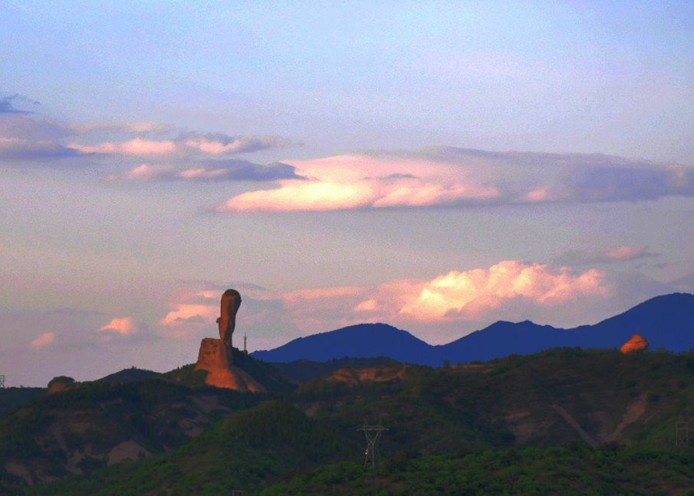 位于避暑山莊南部松鶴清樾北山峰頂。是“康熙三十六景”第十二景。為一方亭。每當夕陽西照,漫天紅紫。此時,東山的磬錘峰金碧輝煌,宏偉壯麗??滴?、乾隆、嘉慶曾在近黃昏時率文武百官及少數(shù)民族王公貴族,登亭舉行蒙古風味的野宴,并觀看磬錘峰落日余下的雄奇俊秀的景象。