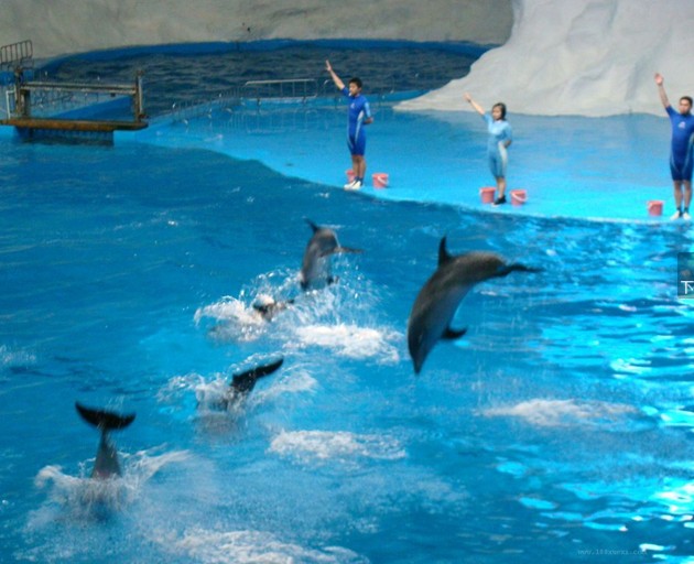 館內除了表演區(qū)外還有調教池、化驗室、飼養(yǎng)間等,在一樓的餐廳可以為游人提供餐館服務,并可透過玻璃墻由水下觀看海豚的表演。