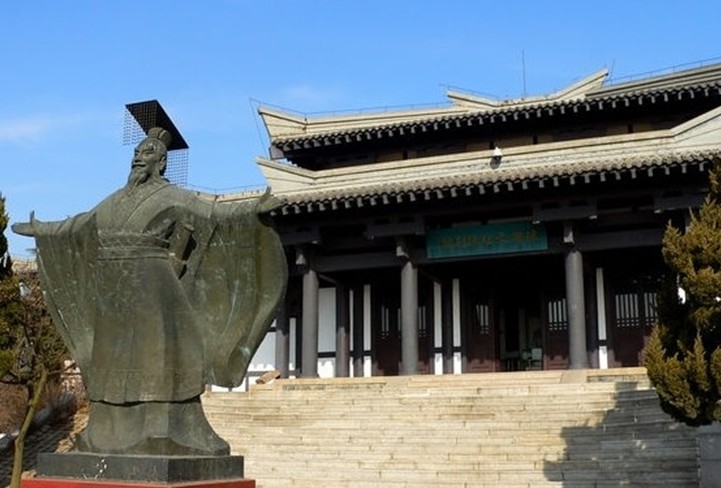 瑯琊文化陳列館位于瑯琊臺(tái)景區(qū)西門東側(cè)的山坡上,黑瓦紅柱,飛檐重疊,造型樸拙大氣,古意凝重,叫人一看便知是秦漢建筑風(fēng)格。陳列館前矗立著《千古一帝秦始皇》的青銅鑄像,展現(xiàn)了始皇帝登上瑯琊臺(tái)臨風(fēng)大樂(lè)的形象,引導(dǎo)人們一進(jìn)景區(qū)便走向瑯琊臺(tái)的歷史文化。陳列館由序廳、主展廳、回廊組成。序廳展覽的是《瑯琊臺(tái)圖》、四時(shí)主祠模型、古瑯琊地區(qū)大事年表和瑯琊歷史變遷圖等。版權(quán)所有山東聊城聊之旅國(guó)際旅行社有限公司,轉(zhuǎn)載必究!主展廳第一層陳列著從春秋至漢代巡游瑯琊的12位重要?dú)v史人物的塑像和反映他們?cè)诂樼鹋_(tái)活動(dòng)的壁畫及地圖;第二層展出瑯琊臺(tái)出土的文物和社會(huì)文物?;乩鹊睦缺谏锨犊讨鴼v代名人吟詠瑯琊風(fēng)物的詩(shī)詞文賦碑刻。